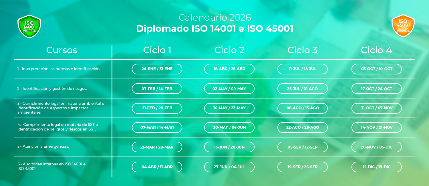 El diplomado ISO 14001 está diseñado para las organizaciones que requieren implementar un Sistema de Gestión Ambiental para garantizar el cuidado del medioambiente y una gestión correcto de los impactos ambientales de sus procesos, productos y servicios a sus clientes y sociedad, con la finalidad de mantener relaciones de confianza a largo plazo.