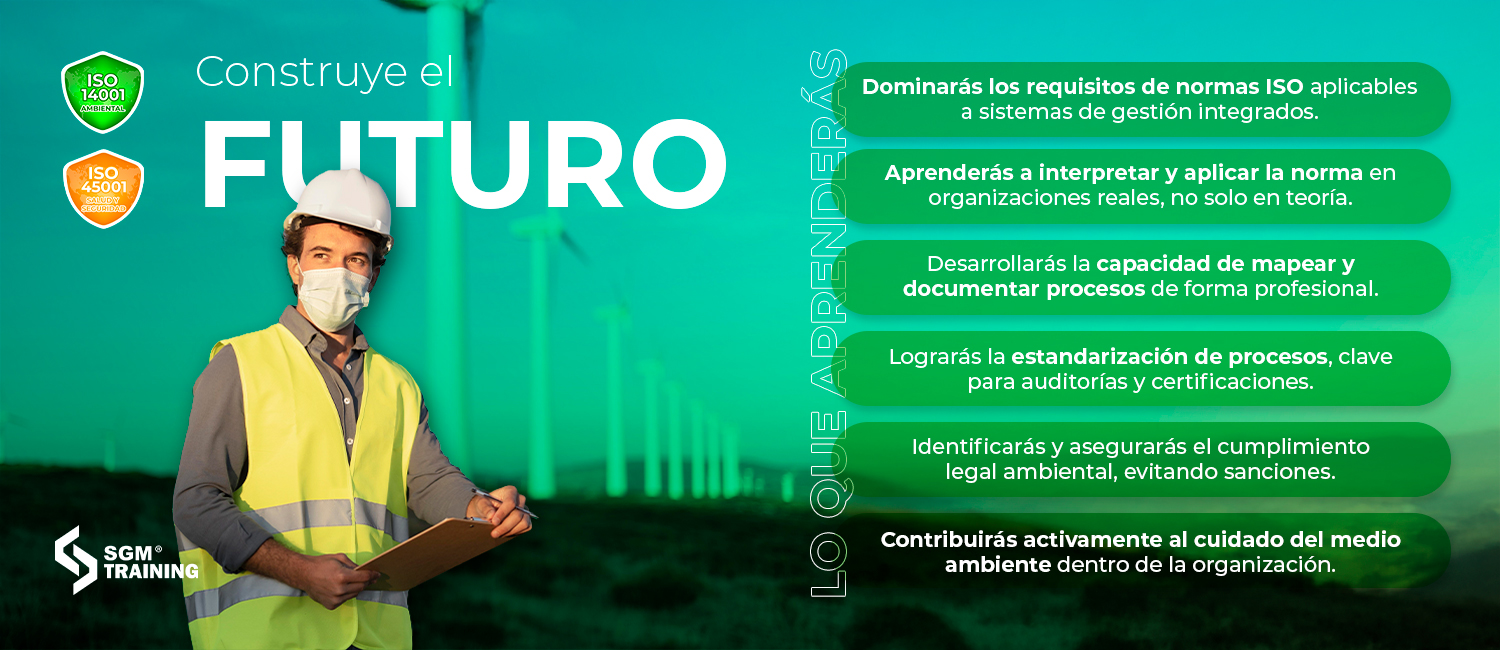 El Diplomado Binorma ISO 14001 e ISO 45001 ha sido diseñado para formar profesionistas capaces de implementar y auditar un Sistema de Gestión Integral, alineado a los estándares internacionales ISO 14001:2015 e ISO 45001:2018.